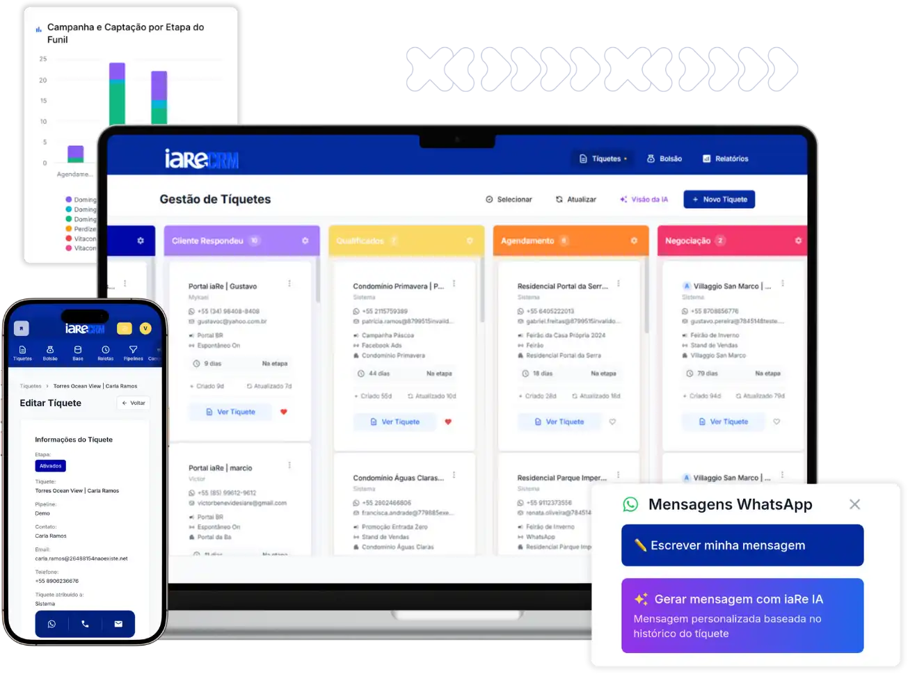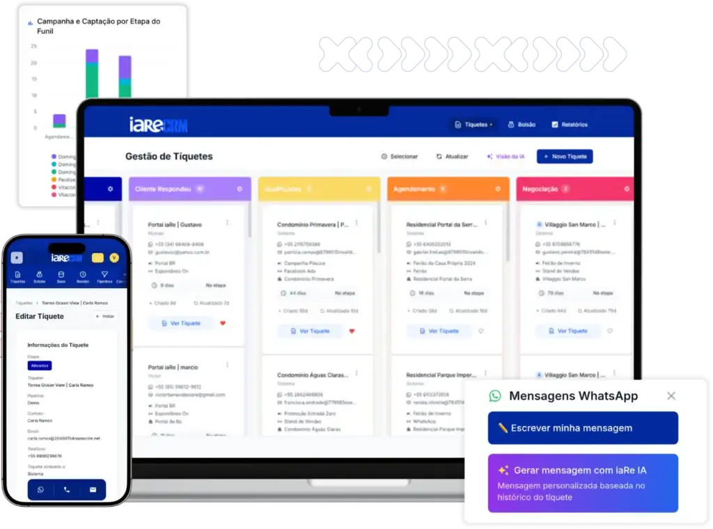 Com o iaRe CRM, sua empresa otimiza processos, organiza e acelera os atendimentos, garantindo uma experiência profissional desde o primeiro contato com o cliente